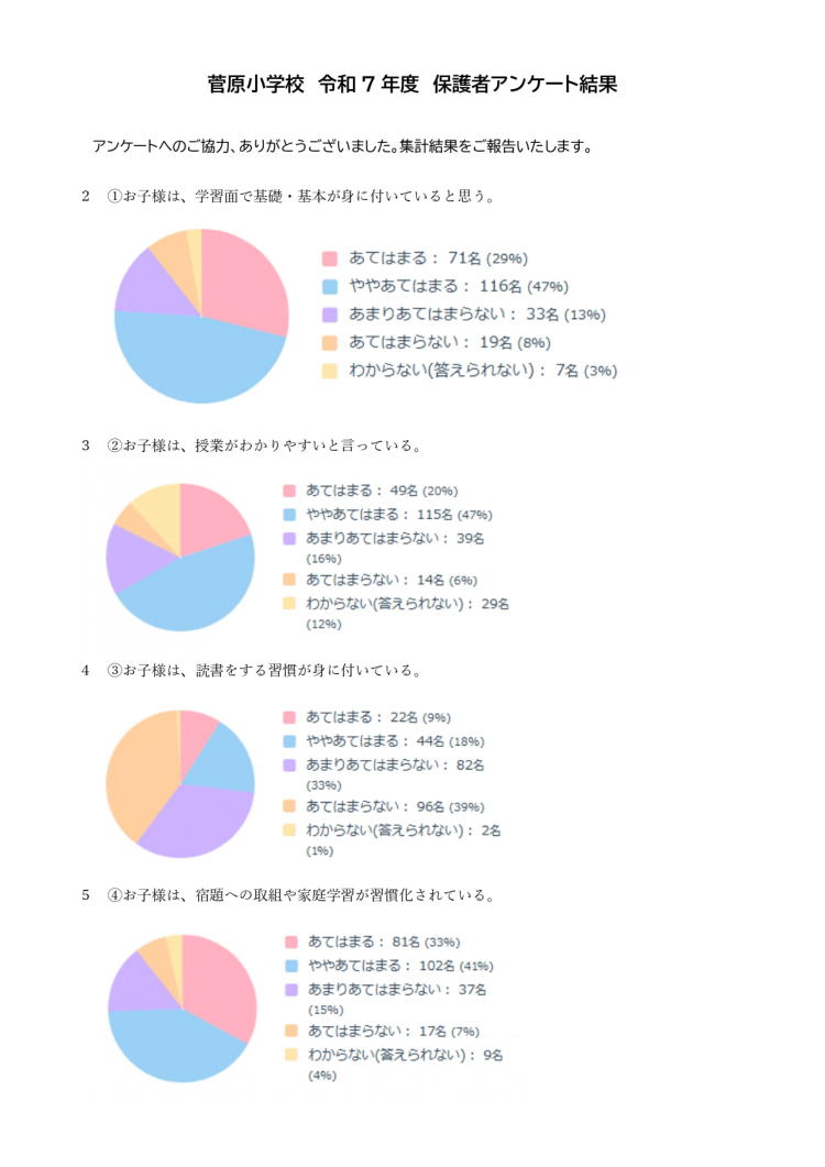 ●菅原小学校 令和7年度 保護者アンケート結果