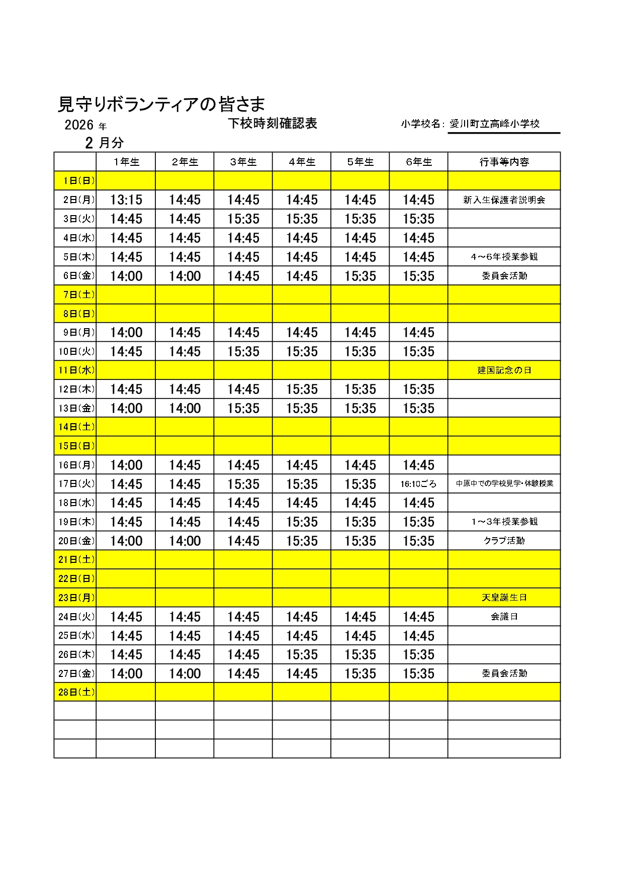 給食だより1月号を掲載しました。 学校給食予定献立表1月を掲載しました。 下校時刻確認表1月・訂正版、下校時刻確認表2月を掲載しました。 |