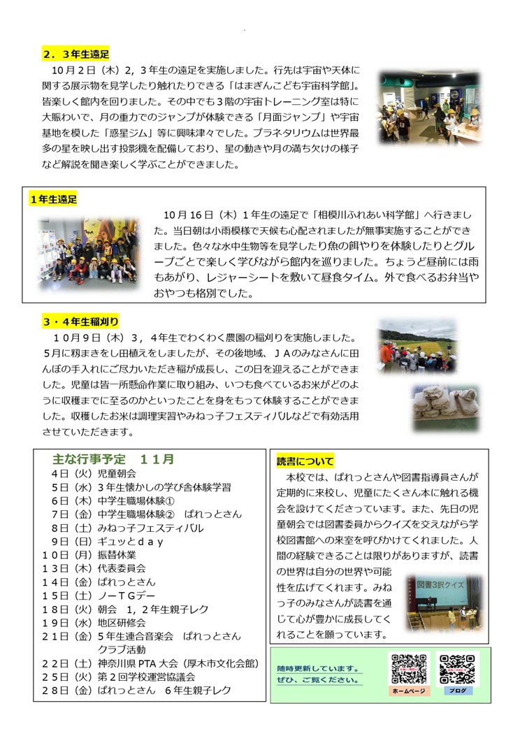 「学校だより「みねっこ第6号」 令和7年10月発行